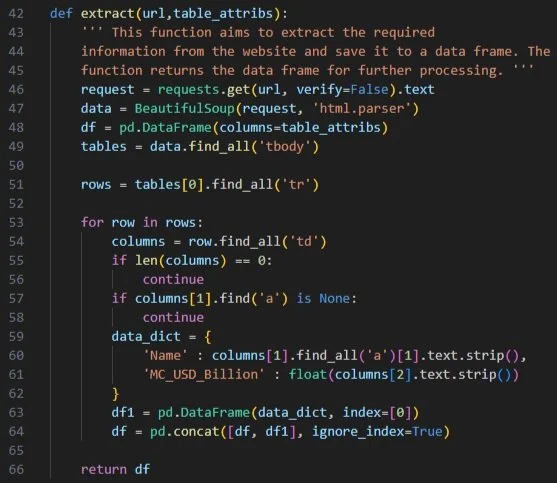 As part of IBM’s Python Project for Data Engineering, I was tasked with building a full ETL pipeline to extract and process financial data for the world’s largest banks. The project involved real-world web scraping, data transformation using exchange rates, and saving outputs to both CSV and SQL database formats - all automated with progress logging.